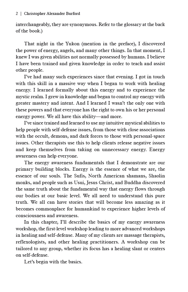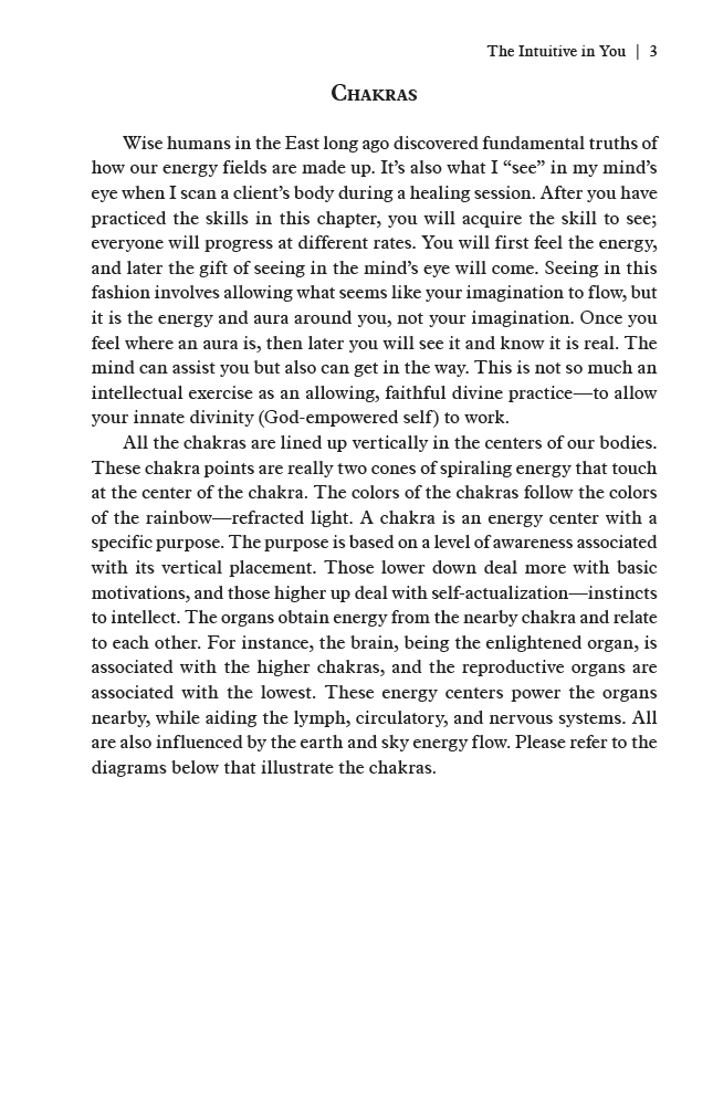 Although the book is designed around Burford’s lectures and presentations, it provides enough information for a self-taught practitioner to follow along at home. Beginning with clear, well-mapped diagrams of the chakras, energy beams, and spiraling energy cones, The Intuitive in You is a brief, comprehensive guide to energy work.